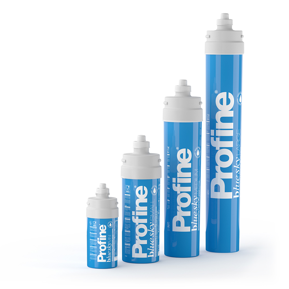 Profine® BLUE SKY to kartridż szybkozłączny wykorzystujący technologię ekstrudowanego Carbon Block do usuwania zmętnienia, chloru, smaków i zapachów. Wyróżnia się nominalnym stopniem filtracji 0,5 mikrona, co sprawia, że jest bardzo dokładny w klarowaniu wody pitnej i może służyć jako etap pre-filtracji dla systemów odwróconej osmozy. Zapewnia dużą pojemność, np. do 45 000 litrów dla modelu Large.